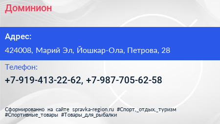 Доминион по адресу 424008, Марий Эл, Йошкар-Ола, Петрова, 28 в дальнейшем Организация, размещена в следующих категориях: