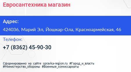 Евросантехника, магазин по адресу 424036, Марий Эл, Йошкар-Ола, Красноармейская, 46 в дальнейшем Организация, размещена в следующих категориях: