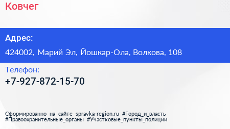 Ковчег по адресу 424002, Марий Эл, Йошкар-Ола, Волкова, 108 в дальнейшем Организация, размещена в следующих категориях: