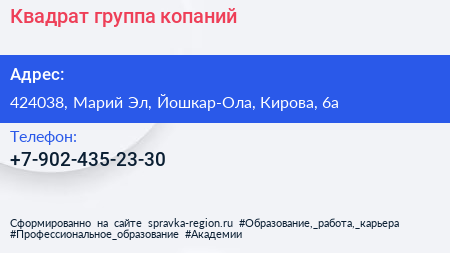 Квадрат, группа копаний по адресу 424038, Марий Эл, Йошкар-Ола, Кирова, 6а в дальнейшем Организация, размещена в следующих категориях: