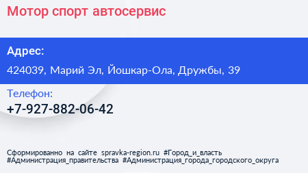 Мотор-спорт, автосервис по адресу 424039, Марий Эл, Йошкар-Ола, Дружбы, 39 в дальнейшем Организация, размещена в следующих категориях: