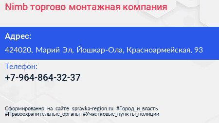Nimb, торгово-монтажная компания по адресу 424020, Марий Эл, Йошкар-Ола, Красноармейская, 93 в дальнейшем Организация, размещена в следующих категориях: