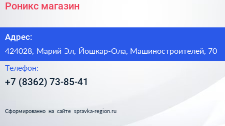 Роникс, магазин по адресу 424028, Марий Эл, Йошкар-Ола, Машиностроителей, 70 в дальнейшем Организация, размещена в следующих категориях: