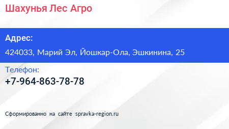 Шахунья-Лес Агро по адресу 424033, Марий Эл, Йошкар-Ола, Эшкинина, 25 в дальнейшем Организация, размещена в следующих категориях: