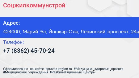 Соцжилкоммунстрой по адресу 424000, Марий Эл, Йошкар-Ола, Ленинский проспект, 24а в дальнейшем Организация, размещена в следующих категориях: