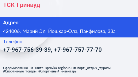 ТСК Гринвуд по адресу 424006, Марий Эл, Йошкар-Ола, Панфилова, 33а в дальнейшем Организация, размещена в следующих категориях: