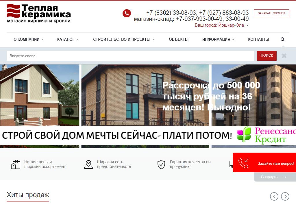 Теплая керамика, магазин кирпича и кровли по адресу 424003, Марий Эл, Йошкар-Ола, Анциферова, 46 в дальнейшем Организация, размещена в следующих категориях: