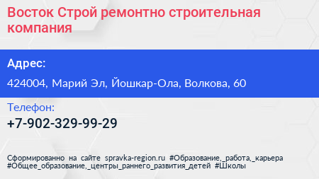 Восток Строй, ремонтно-строительная компания по адресу 424004, Марий Эл, Йошкар-Ола, Волкова, 60 в дальнейшем Организация, размещена в следующих категориях: