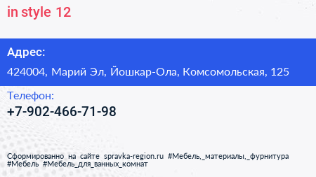 in.style.12 по адресу 424004, Марий Эл, Йошкар-Ола, Комсомольская, 125 в дальнейшем Организация, размещена в следующих категориях: