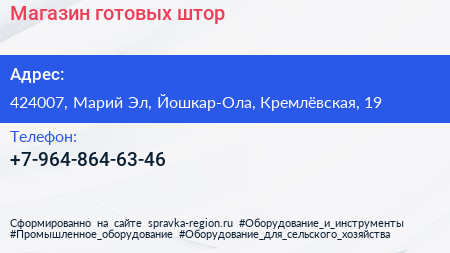 Магазин готовых штор по адресу 424007, Марий Эл, Йошкар-Ола, Кремлёвская, 19 в дальнейшем Организация, размещена в следующих категориях: