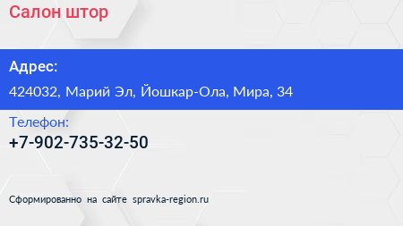 Салон штор по адресу 424032, Марий Эл, Йошкар-Ола, Мира, 34 в дальнейшем Организация, размещена в следующих категориях: