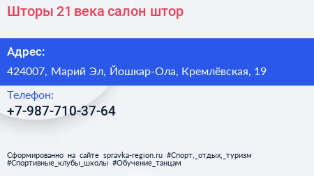 Шторы 21 века, салон штор по адресу 424007, Марий Эл, Йошкар-Ола, Кремлёвская, 19 в дальнейшем Организация, размещена в следующих категориях: