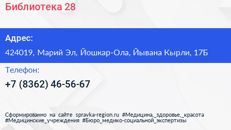 Библиотека №28 по адресу 424019, Марий Эл, Йошкар-Ола, Йывана Кырли, 17Б в дальнейшем Организация, размещена в следующих категориях:
