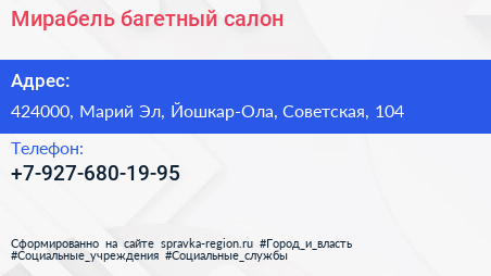 Мирабель, багетный салон по адресу 424000, Марий Эл, Йошкар-Ола, Советская, 104 в дальнейшем Организация, размещена в следующих категориях: