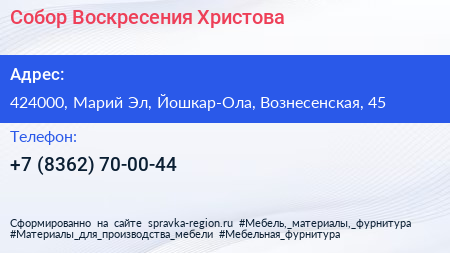 Собор Воскресения Христова по адресу 424000, Марий Эл, Йошкар-Ола, Вознесенская, 45 в дальнейшем Организация, размещена в следующих категориях: