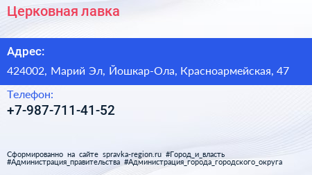 Церковная лавка по адресу 424002, Марий Эл, Йошкар-Ола, Красноармейская, 47 в дальнейшем Организация, размещена в следующих категориях: