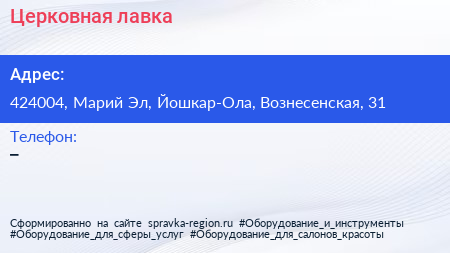 Церковная лавка по адресу 424004, Марий Эл, Йошкар-Ола, Вознесенская, 31 в дальнейшем Организация, размещена в следующих категориях: