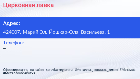 Церковная лавка по адресу 424007, Марий Эл, Йошкар-Ола, Васильева, 1 в дальнейшем Организация, размещена в следующих категориях: