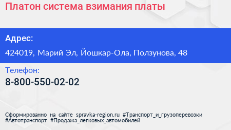 Платон, система взимания платы по адресу 424019, Марий Эл, Йошкар-Ола, Ползунова, 48 в дальнейшем Организация, размещена в следующих категориях: