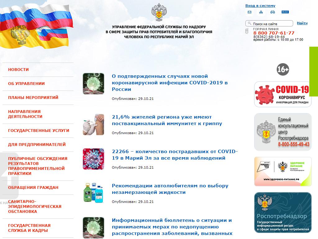 Управление Федеральной службы по надзору в сфере защиты прав потребителей и благополучия человека по Республике Марий Эл по адресу 424007, Марий Эл, Йошкар-Ола, Машиностроителей, 121 в дальнейшем Организация, размещена в следующих категориях: