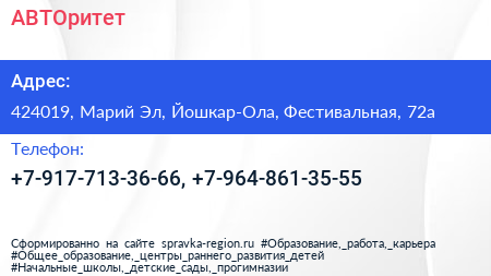АВТОритет по адресу 424019, Марий Эл, Йошкар-Ола, Фестивальная, 72а в дальнейшем Организация, размещена в следующих категориях: