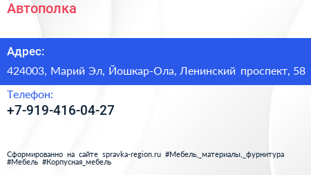 Автополка по адресу 424003, Марий Эл, Йошкар-Ола, Ленинский проспект, 58 в дальнейшем Организация, размещена в следующих категориях: