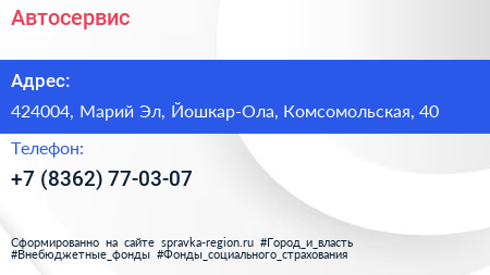 Автосервис по адресу 424004, Марий Эл, Йошкар-Ола, Комсомольская, 40 в дальнейшем Организация, размещена в следующих категориях: