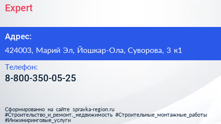 Expert по адресу 424003, Марий Эл, Йошкар-Ола, Суворова, 3 к1 в дальнейшем Организация, размещена в следующих категориях: