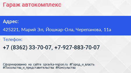 Гараж, автокомплекс по адресу 425221, Марий Эл, Йошкар-Ола, Черепанова, 11а в дальнейшем Организация, размещена в следующих категориях: