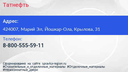 Татнефть по адресу 424007, Марий Эл, Йошкар-Ола, Крылова, 31 в дальнейшем Организация, размещена в следующих категориях: