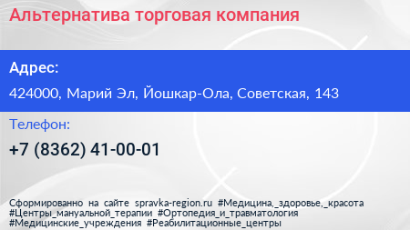 Альтернатива, торговая компания по адресу 424000, Марий Эл, Йошкар-Ола, Советская, 143 в дальнейшем Организация, размещена в следующих категориях:
