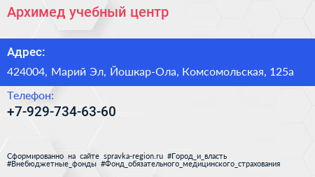Архимед, учебный центр по адресу 424004, Марий Эл, Йошкар-Ола, Комсомольская, 125а в дальнейшем Организация, размещена в следующих категориях: