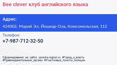 Bee clever, клуб английского языка по адресу 424002, Марий Эл, Йошкар-Ола, Комсомольская, 112 в дальнейшем Организация, размещена в следующих категориях: