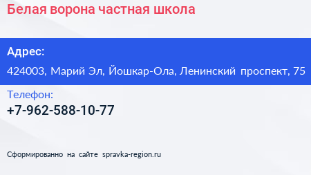 Белая ворона, частная школа по адресу 424003, Марий Эл, Йошкар-Ола, Ленинский проспект, 75 в дальнейшем Организация, размещена в следующих категориях: