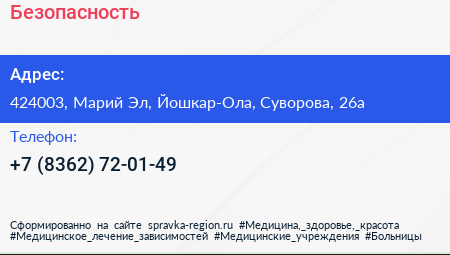 Безопасность по адресу 424003, Марий Эл, Йошкар-Ола, Суворова, 26а в дальнейшем Организация, размещена в следующих категориях: