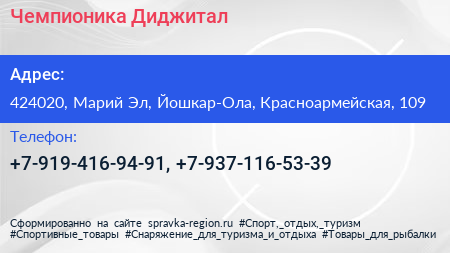 Чемпионика Диджитал по адресу 424020, Марий Эл, Йошкар-Ола, Красноармейская, 109 в дальнейшем Организация, размещена в следующих категориях: