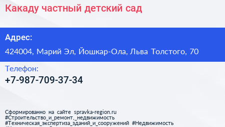 Какаду, частный детский сад по адресу 424004, Марий Эл, Йошкар-Ола, Льва Толстого, 70 в дальнейшем Организация, размещена в следующих категориях: