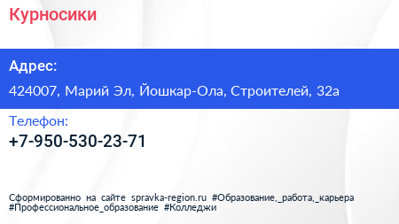 Курносики по адресу 424007, Марий Эл, Йошкар-Ола, Строителей, 32а в дальнейшем Организация, размещена в следующих категориях: