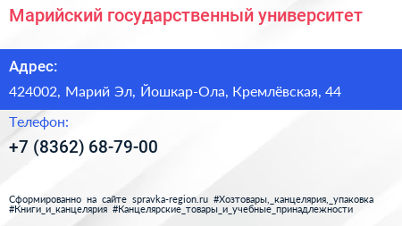 Марийский государственный университет по адресу 424002, Марий Эл, Йошкар-Ола, Кремлёвская, 44 в дальнейшем Организация, размещена в следующих категориях: