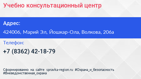 Учебно-консультационный центр по адресу 424006, Марий Эл, Йошкар-Ола, Волкова, 206а в дальнейшем Организация, размещена в следующих категориях: