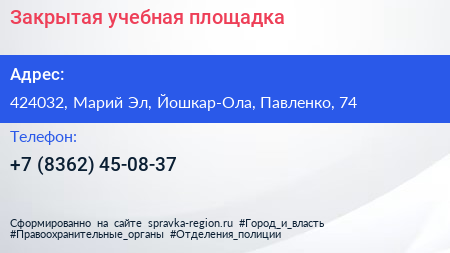 Закрытая учебная площадка по адресу 424032, Марий Эл, Йошкар-Ола, Павленко, 74 в дальнейшем Организация, размещена в следующих категориях: