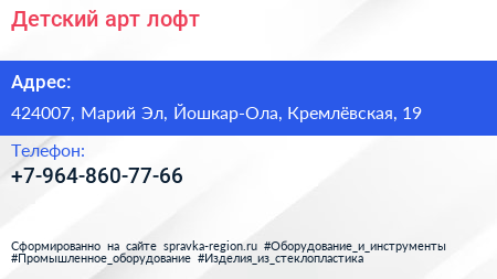 Детский арт-лофт по адресу 424007, Марий Эл, Йошкар-Ола, Кремлёвская, 19 в дальнейшем Организация, размещена в следующих категориях: