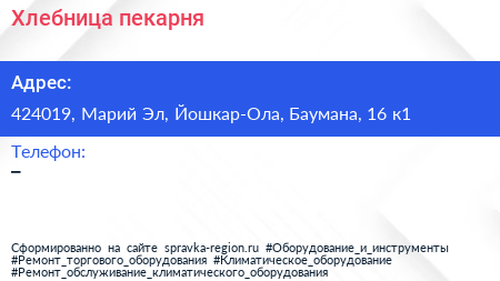Хлебница, пекарня по адресу 424019, Марий Эл, Йошкар-Ола, Баумана, 16 к1 в дальнейшем Организация, размещена в следующих категориях: