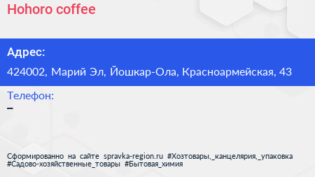 Hohoro coffee по адресу 424002, Марий Эл, Йошкар-Ола, Красноармейская, 43 в дальнейшем Организация, размещена в следующих категориях: