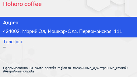 Hohoro coffee по адресу 424002, Марий Эл, Йошкар-Ола, Первомайская, 111 в дальнейшем Организация, размещена в следующих категориях: