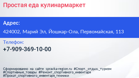 Простая еда, кулинармаркет по адресу 424002, Марий Эл, Йошкар-Ола, Первомайская, 113 в дальнейшем Организация, размещена в следующих категориях: