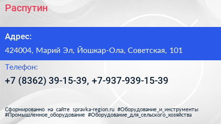 Распутин по адресу 424004, Марий Эл, Йошкар-Ола, Советская, 101 в дальнейшем Организация, размещена в следующих категориях: