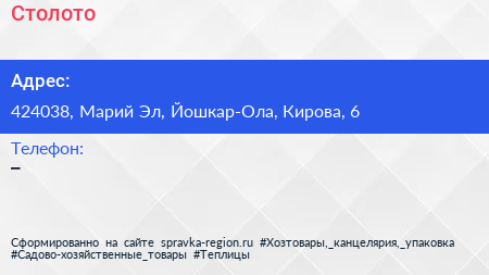 Столото по адресу 424038, Марий Эл, Йошкар-Ола, Кирова, 6 в дальнейшем Организация, размещена в следующих категориях: