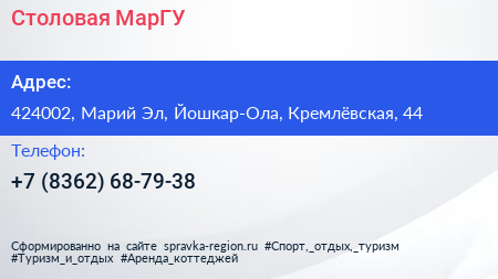 Столовая, МарГУ по адресу 424002, Марий Эл, Йошкар-Ола, Кремлёвская, 44 в дальнейшем Организация, размещена в следующих категориях: