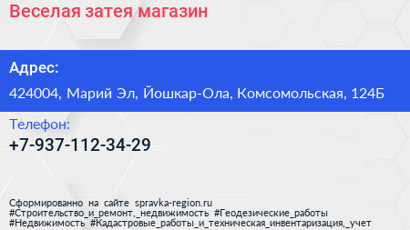 Веселая затея, магазин по адресу 424004, Марий Эл, Йошкар-Ола, Комсомольская, 124Б в дальнейшем Организация, размещена в следующих категориях: